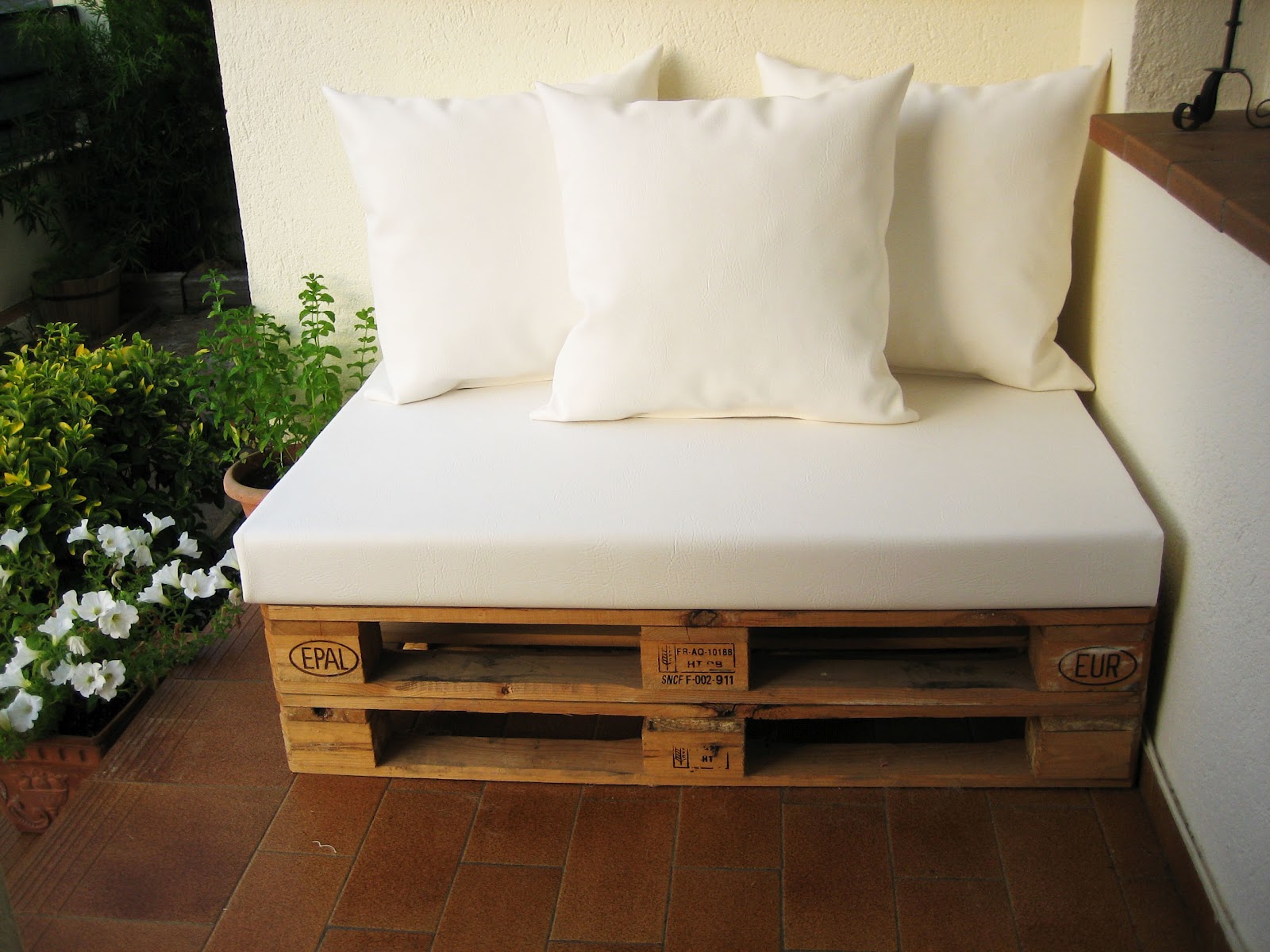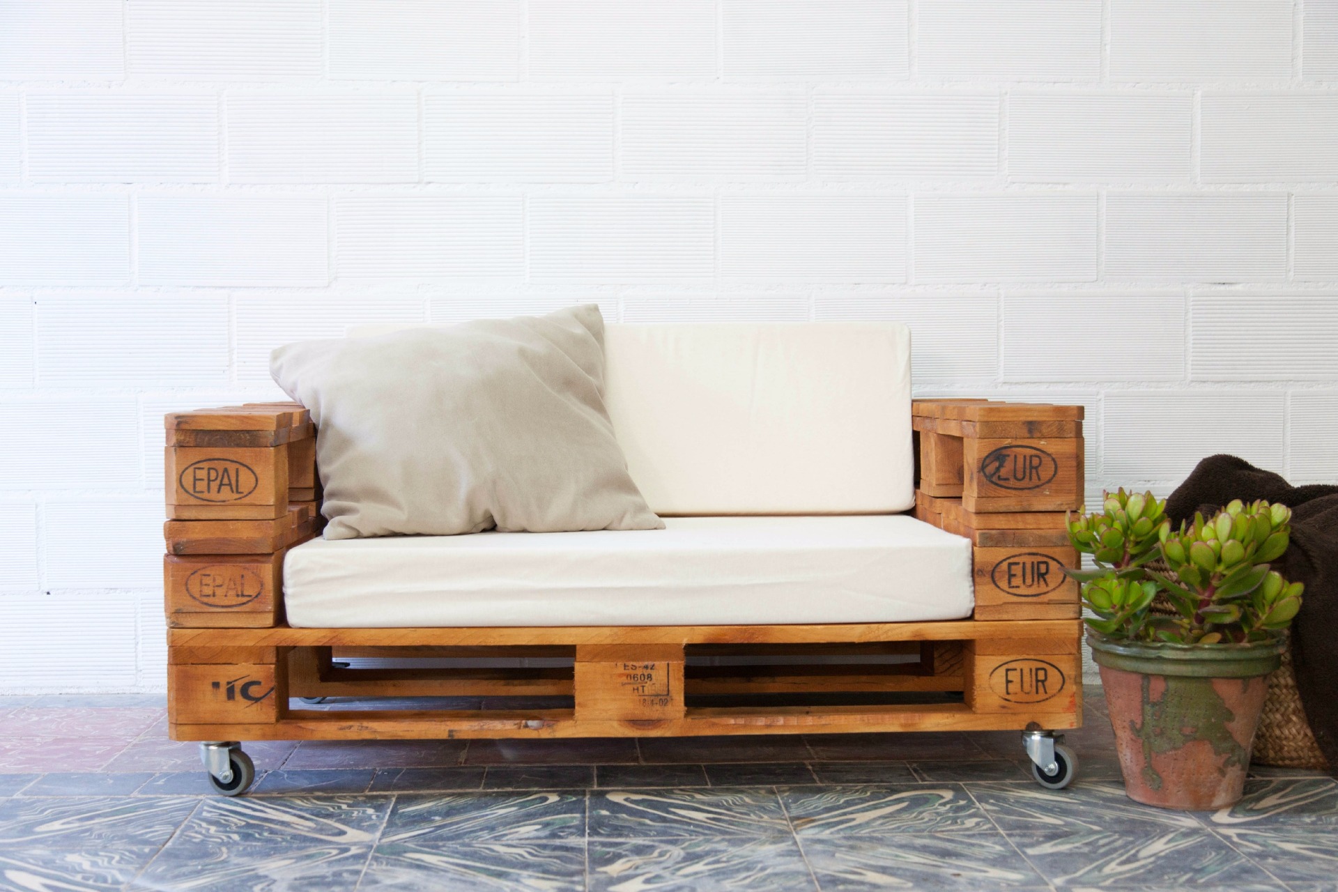 Sofá doble con respaldo, palets europeos, perfecto acabado y protegido para exteriores